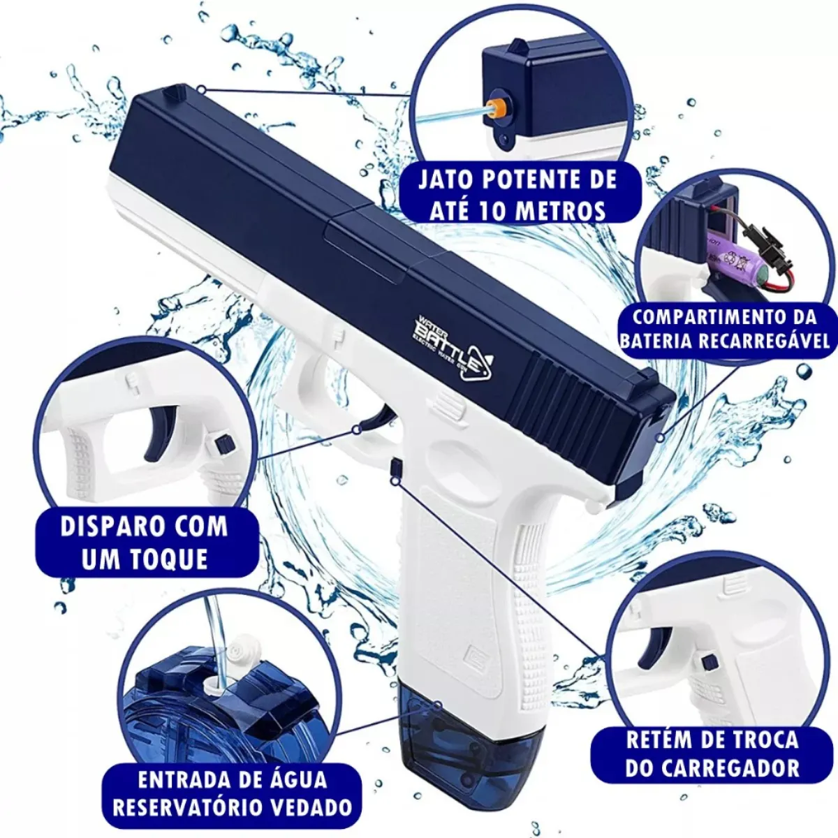 Alcance Impressionante: Projetada para disparar água a aproximadamente 10 metros de distância, garantindo que você acerte seus alvos.