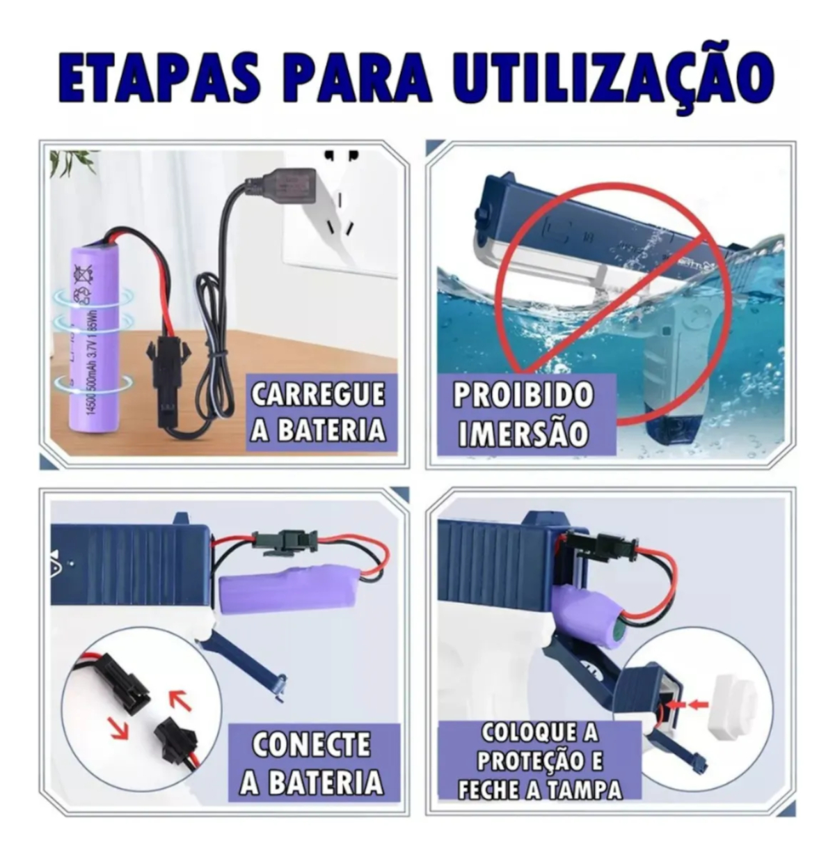 Prepare-se para a diversão aquática com a nossa Arminha de Água Elétrica! Projetada para proporcionar uma experiência emocionante em batalhas de água, esta arminha é equipada com uma potente bateria recarregável, garantindo diversão sem limites.
