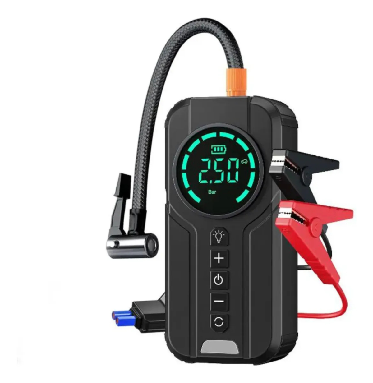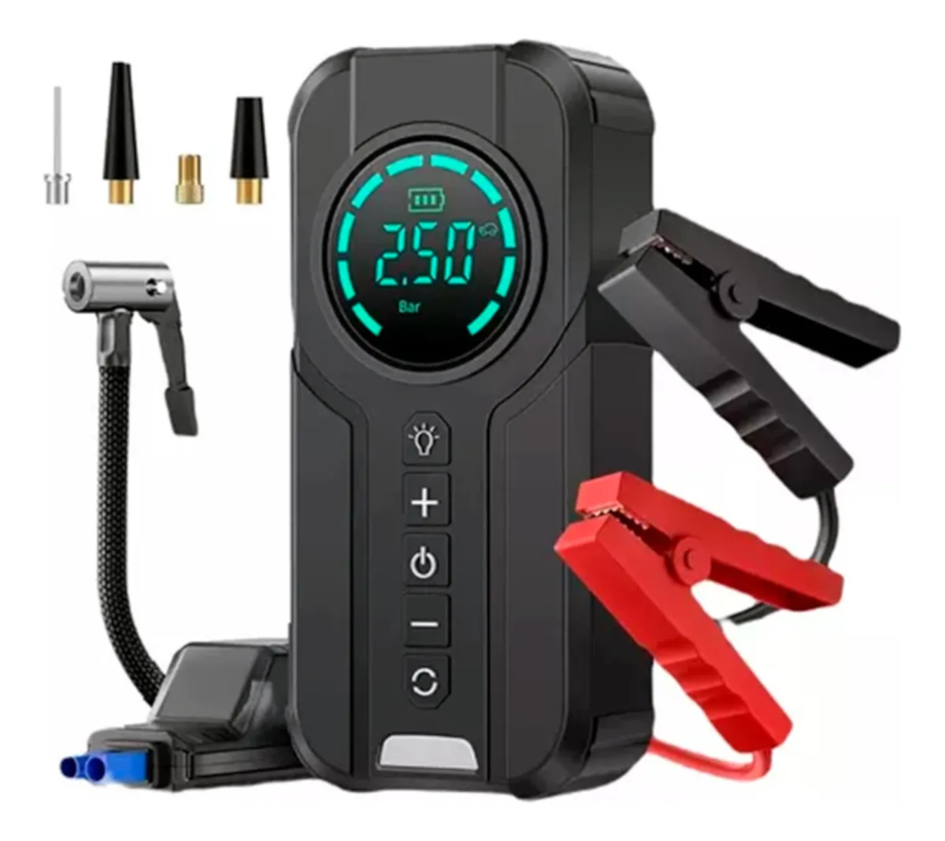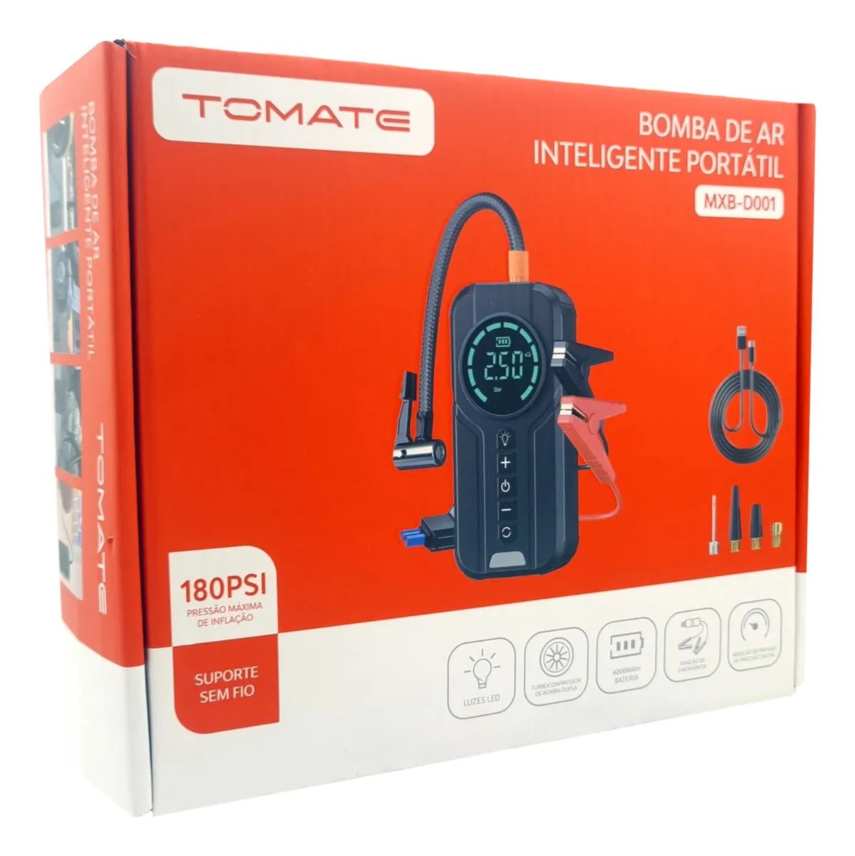 O Auxiliar de Partida + Bomba Compressor Calibrador de Ar Pneu da marca Tomate é a solução perfeita para quem busca praticidade e eficiência. Com pressão máxima de 150 psi, é ideal para encher pneus de carros, bicicletas e motos. Além disso, é portátil e recarregável, perfeito para levar para qualquer lugar.