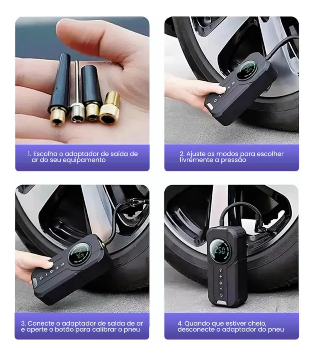 Seja o primeiro a avaliar “Auxiliar De Partida + Bomba Compressor Calibrador De Ar Pneu Preto”
