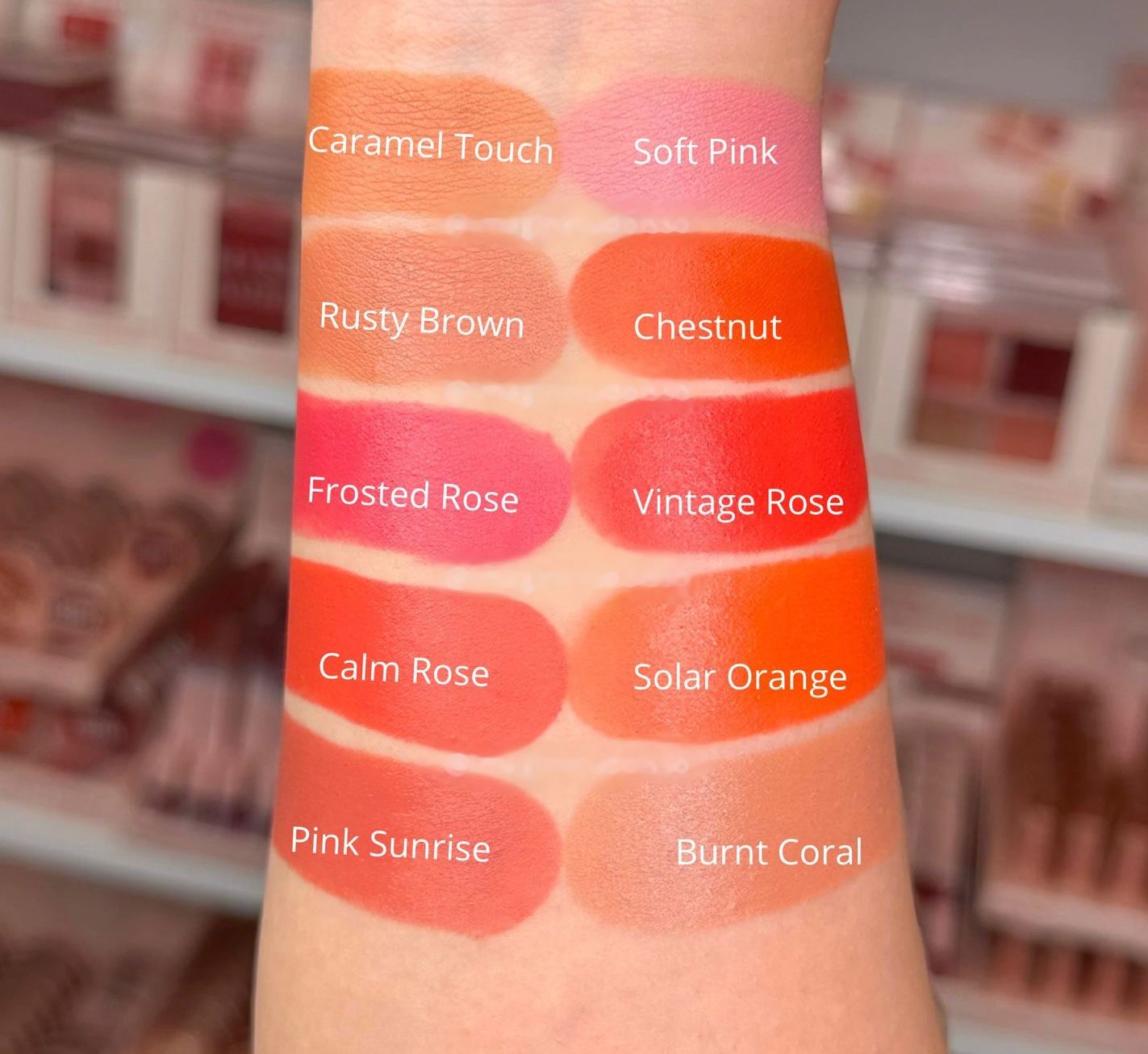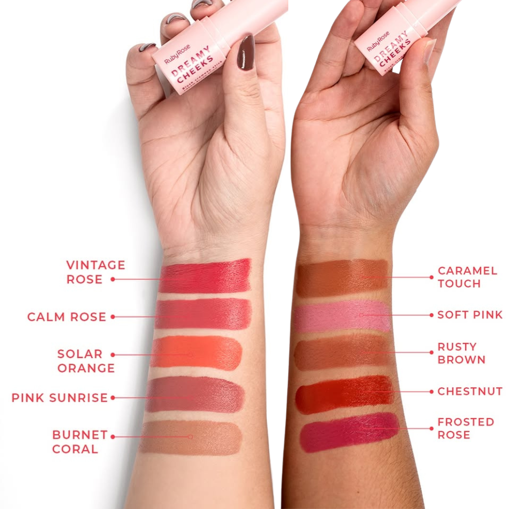 - Tom da maquiagem: FROSTED ROSE / CALM ROSE / SOLAR ORANGE / VINTAGE ROSE/ CHESTNUT