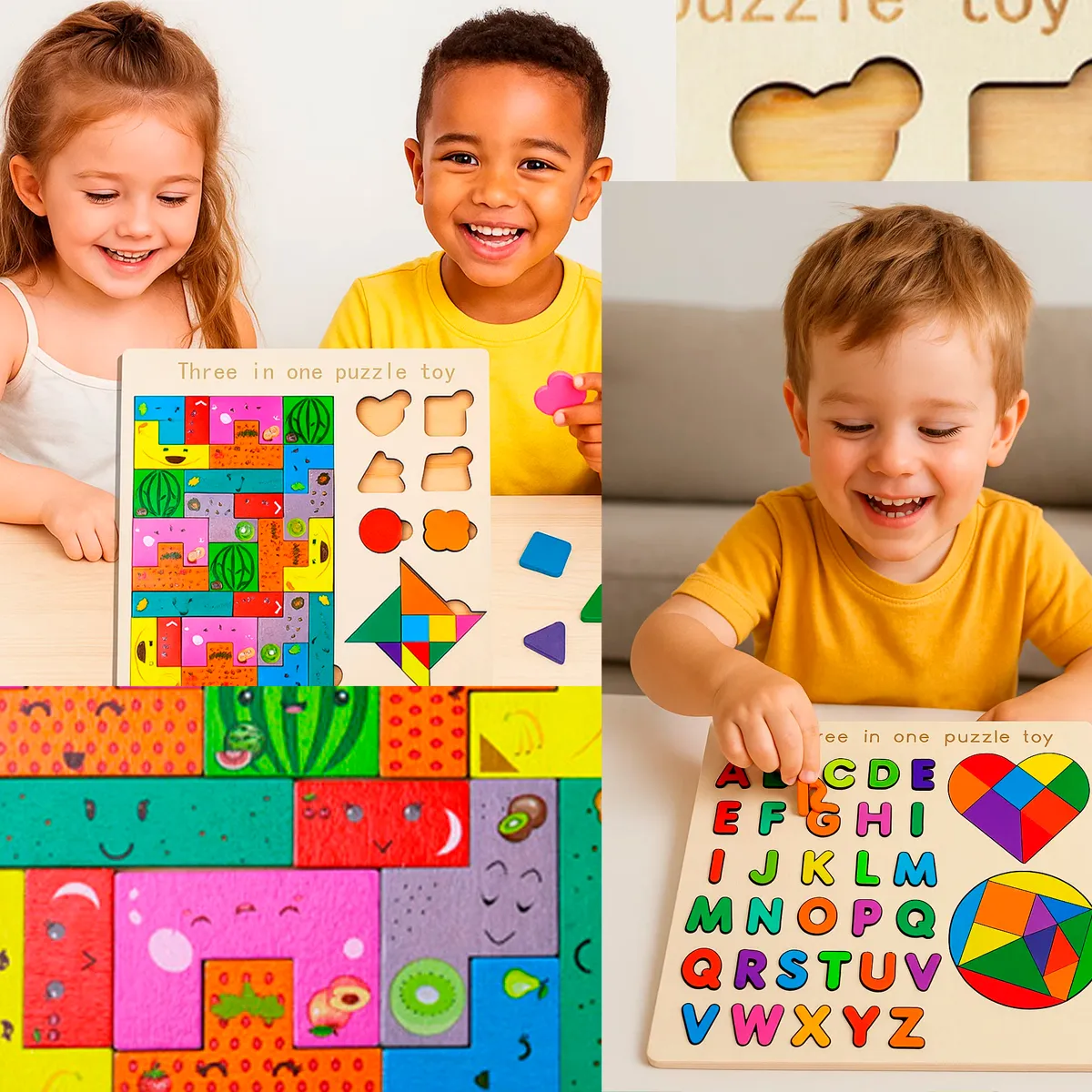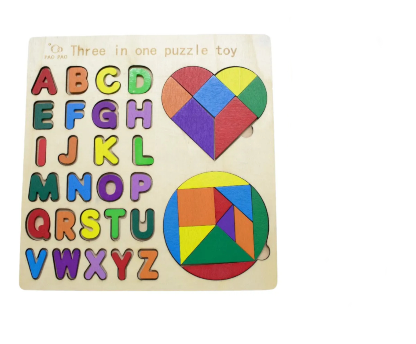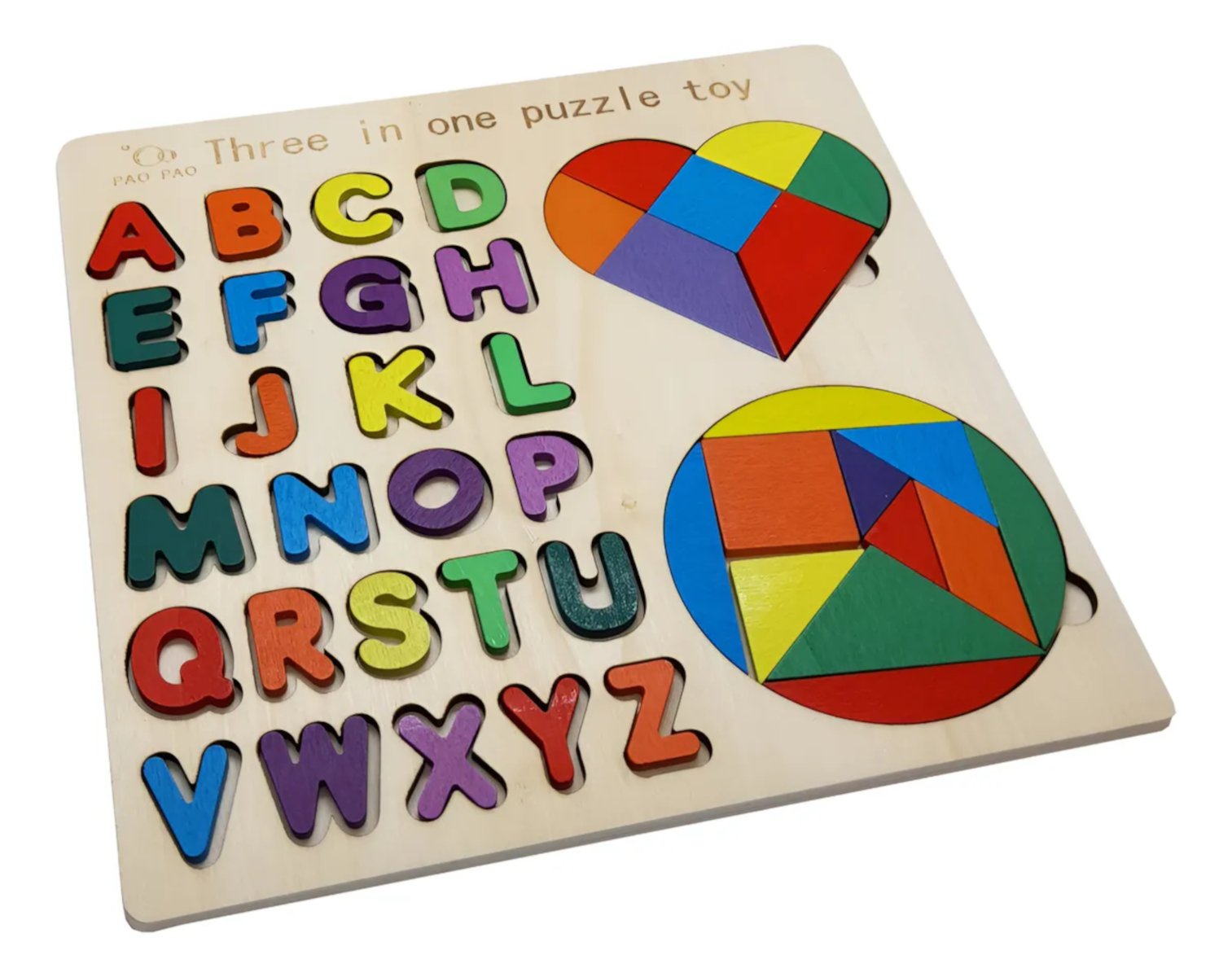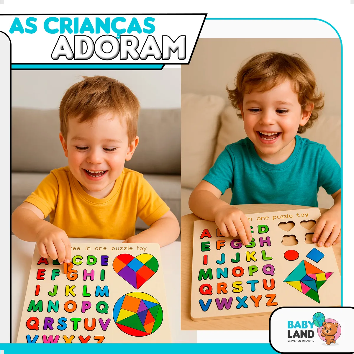 Kit Puzzle de Madeira Educativo Montessori – ABC, Formas e Cores