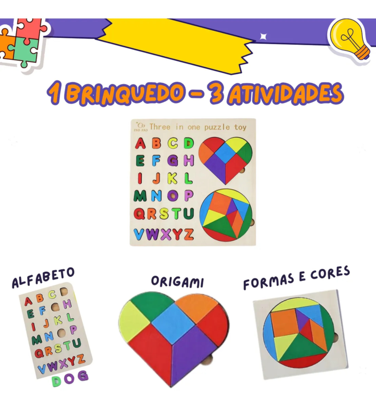 Quebra-Cabeça puzzle encaixar montessori sensorial autismo monta formas tetris colorido letras alfabeto coração geométri |