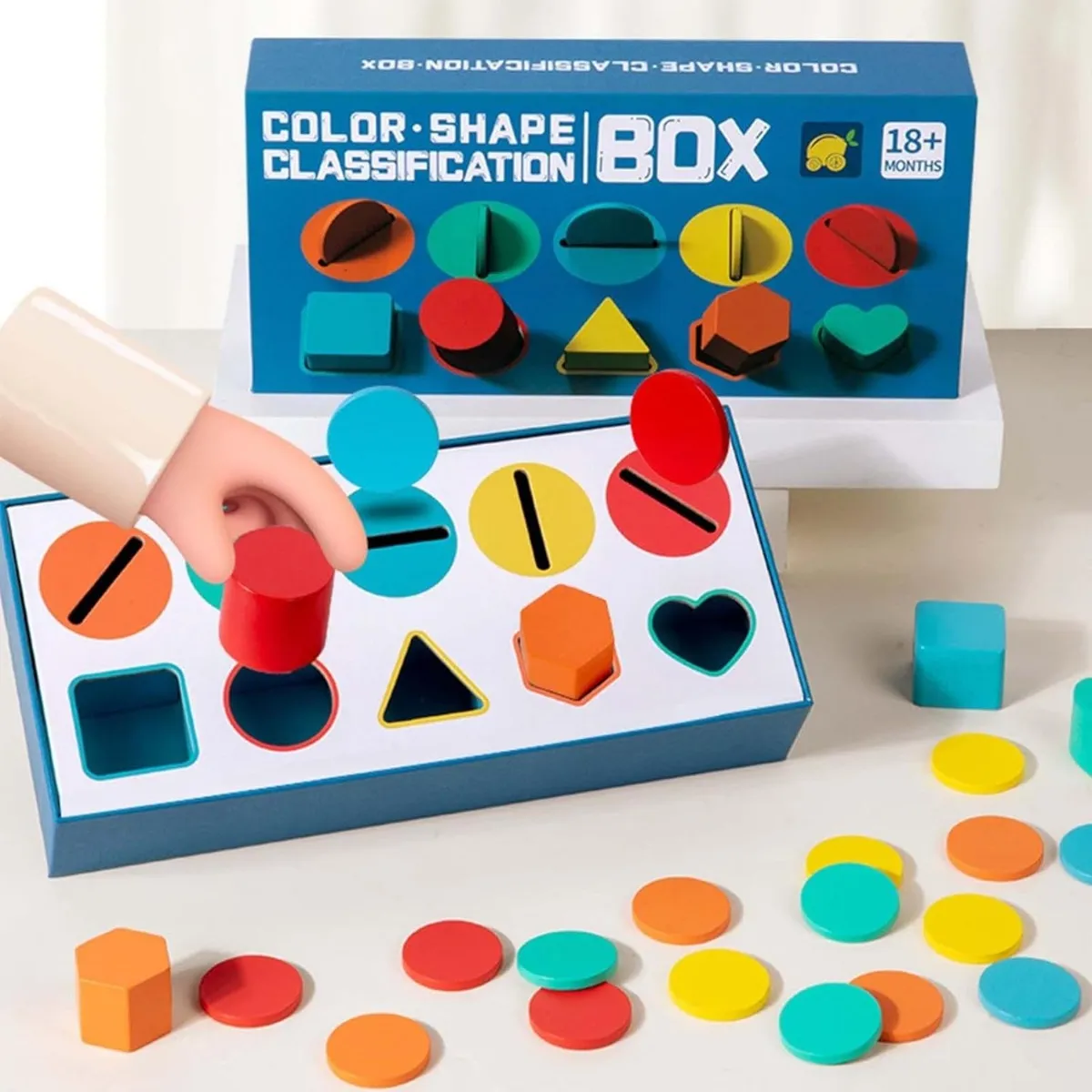Wooden Color Shape Sorting Box Children’s Teaching Shape Color Cognition Matching Box Educational Toys