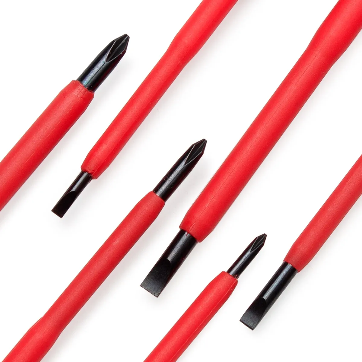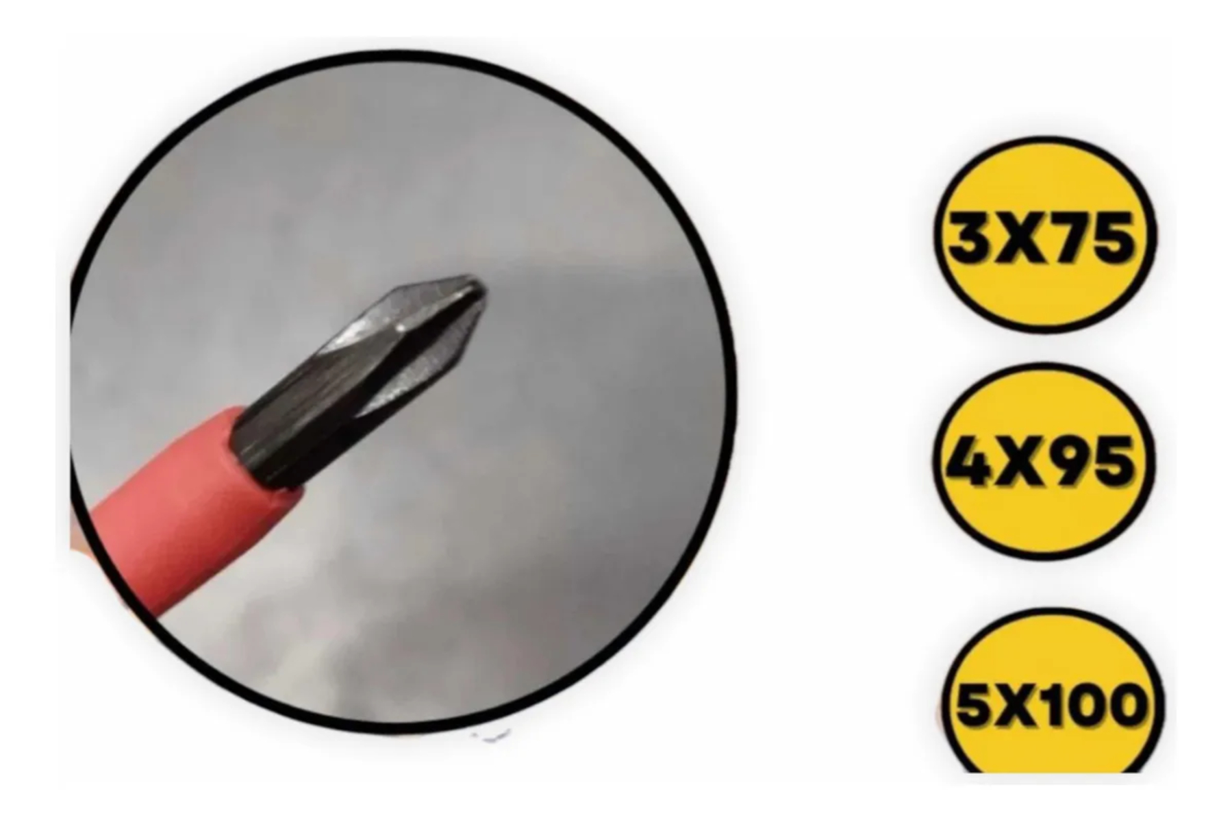 O kit inclui uma variedade de chaves Philips e chaves de fenda, com diferentes bitolas e tamanhos. Essa diversidade permite que você tenha as ferramentas certas para diferentes tipos de parafusos e necessidades de trabalho, tornando-o versátil e adequado para uma ampla gama de aplicações.