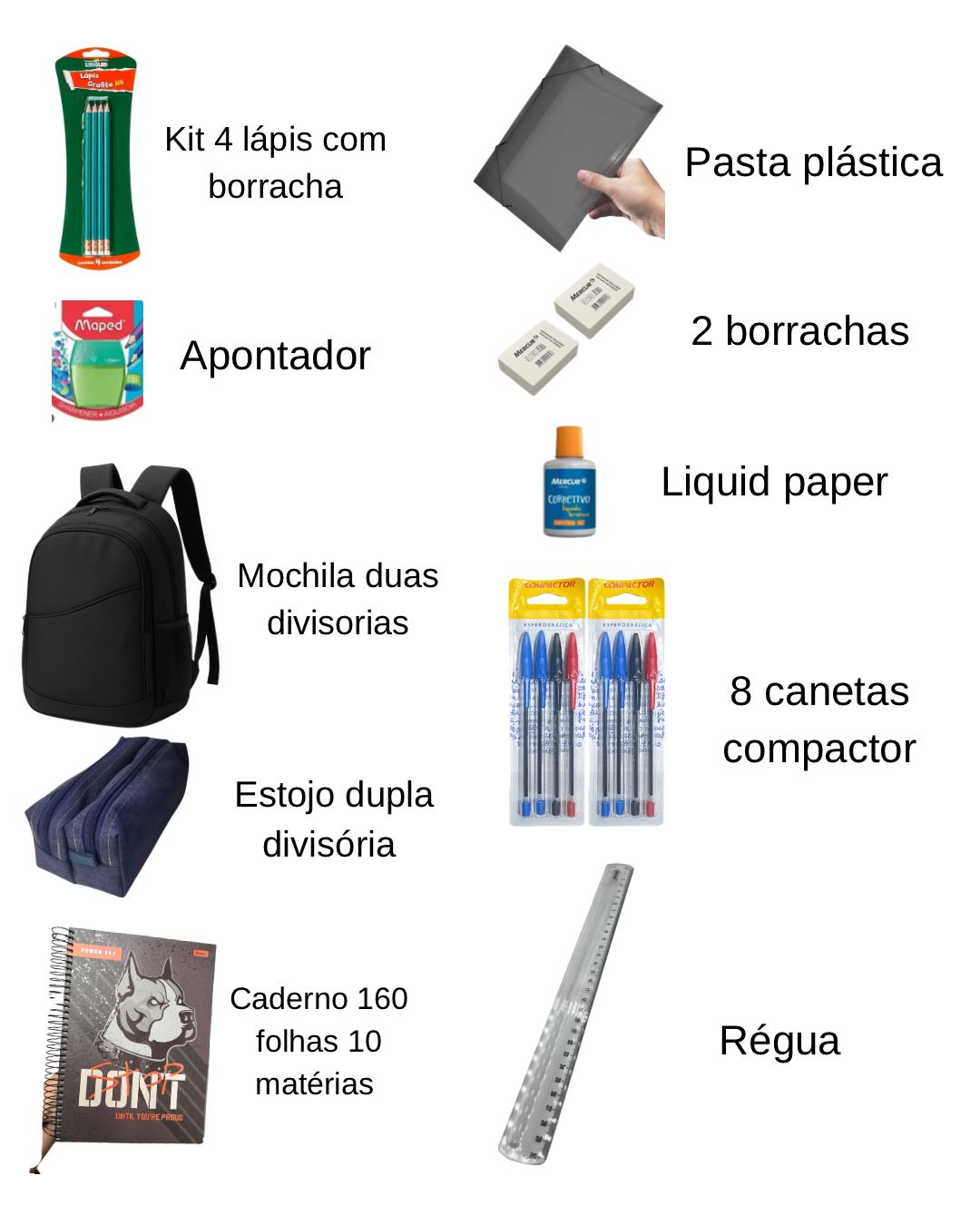 Kit Material Escolar Completo Universitário Ensino Médio Masculino Menino