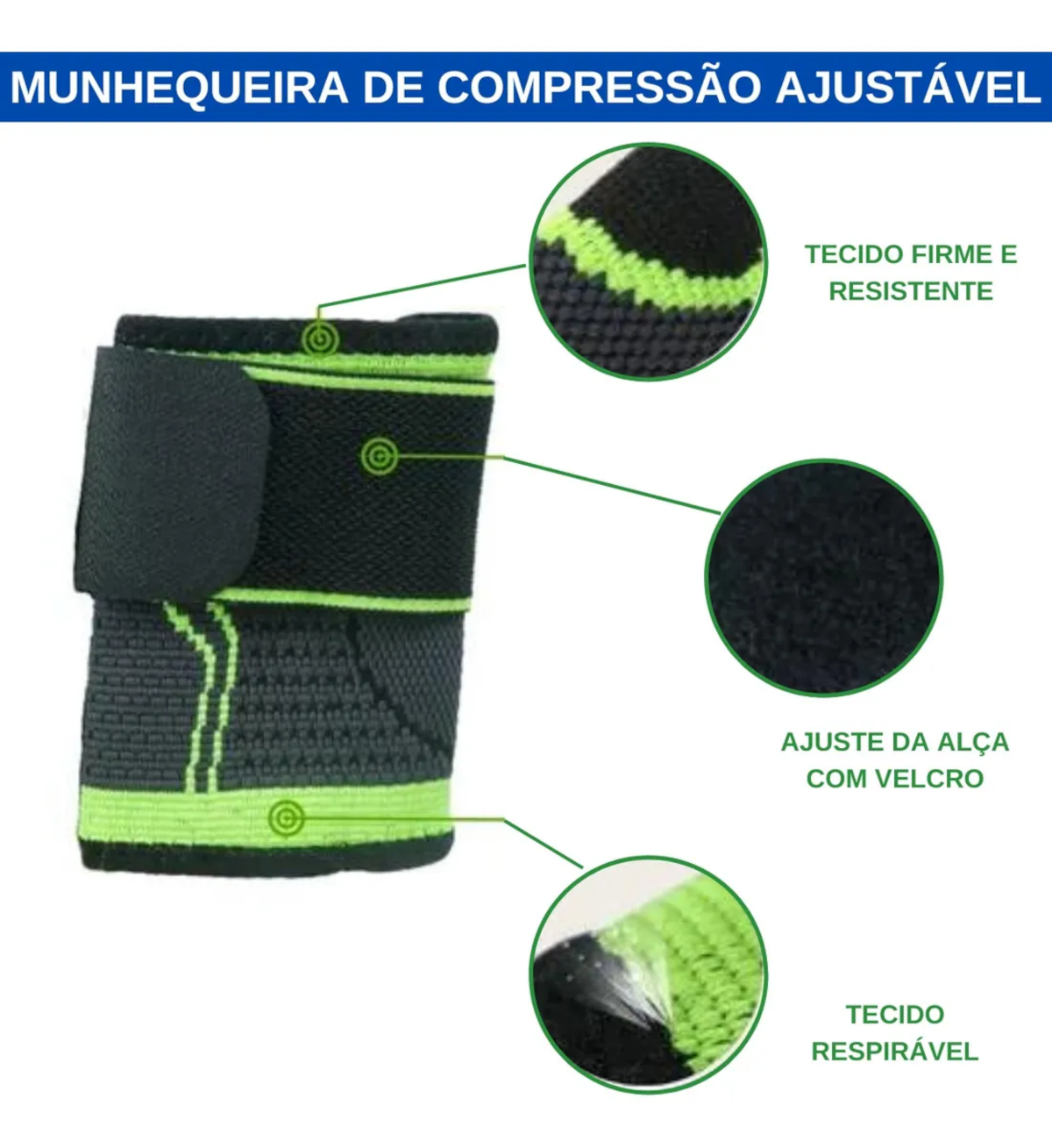 Munhequeira Compressão Ajustável Punho Elástica Esporte Cor Verde