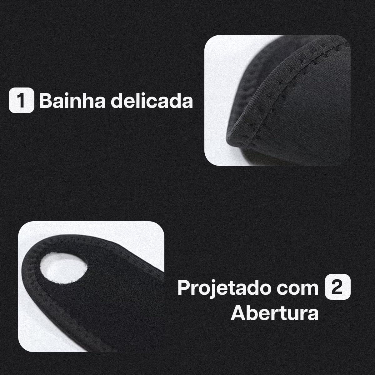 Feita com material elástico e respirável, proporciona conforto mesmo em uso prolongado.