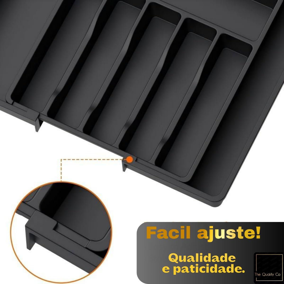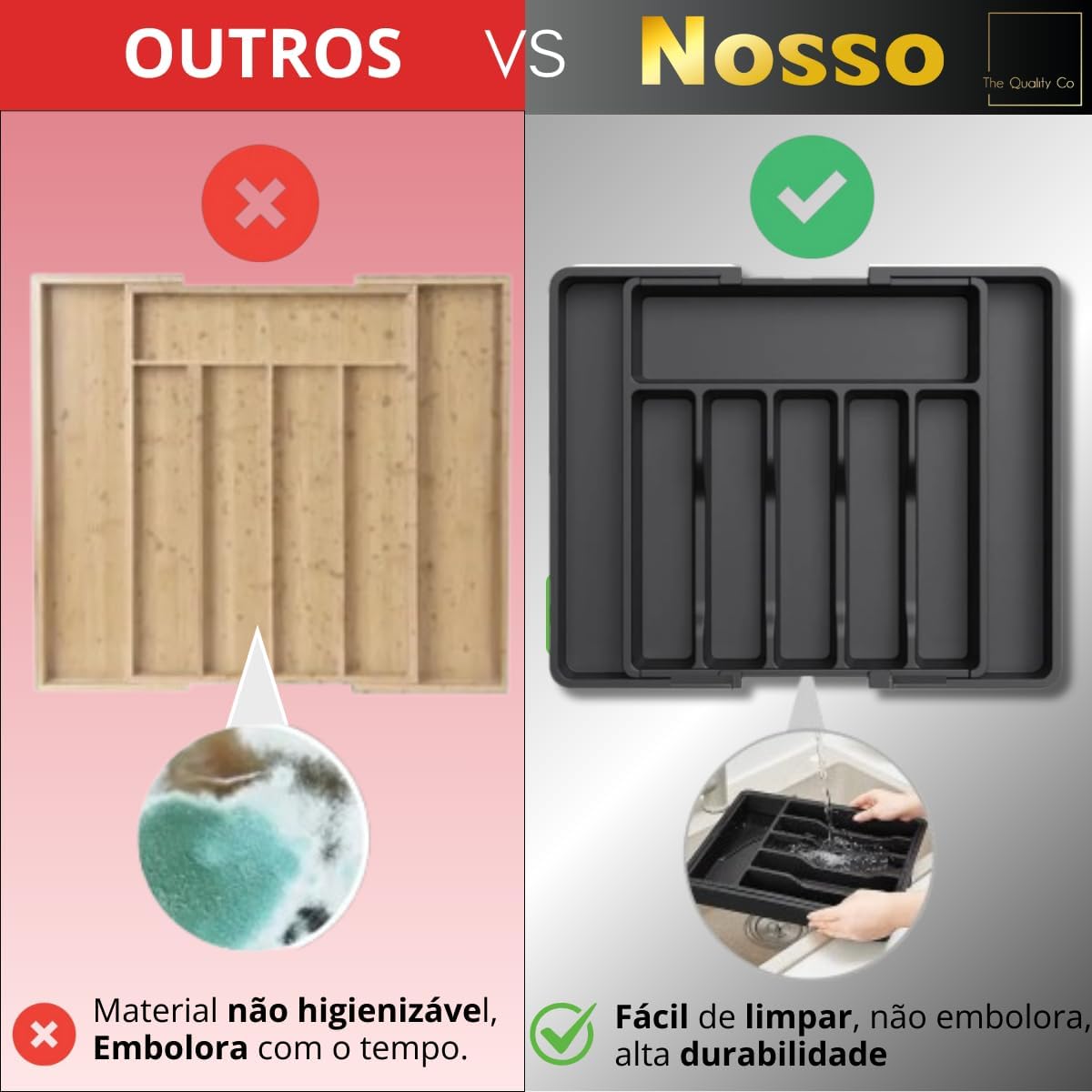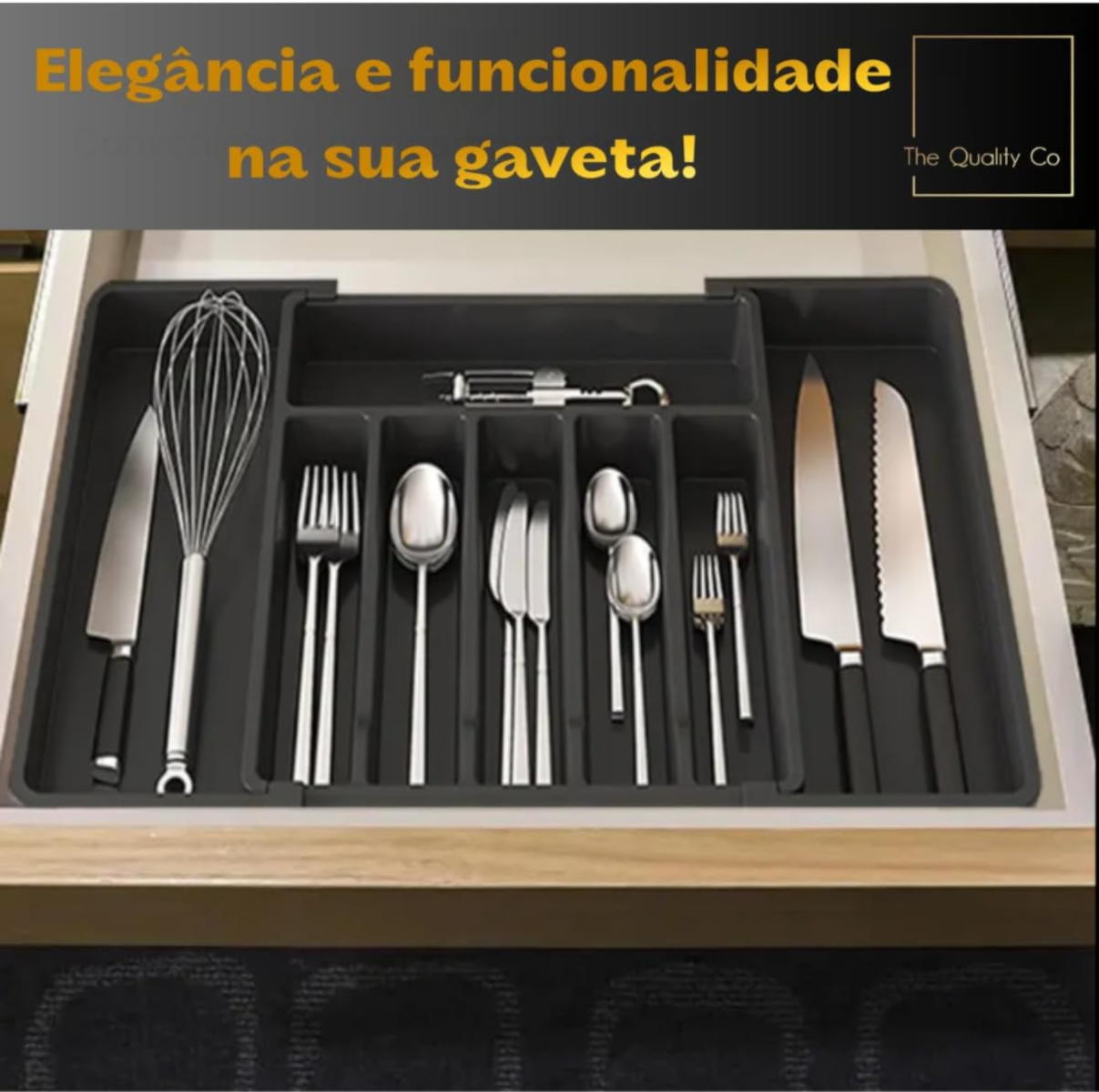 Cansado da bagunça na gaveta? Transforme o caos em ordem e encontre seus talheres e utensílios em segundos com o Organizador de Gaveta Extensível BMax