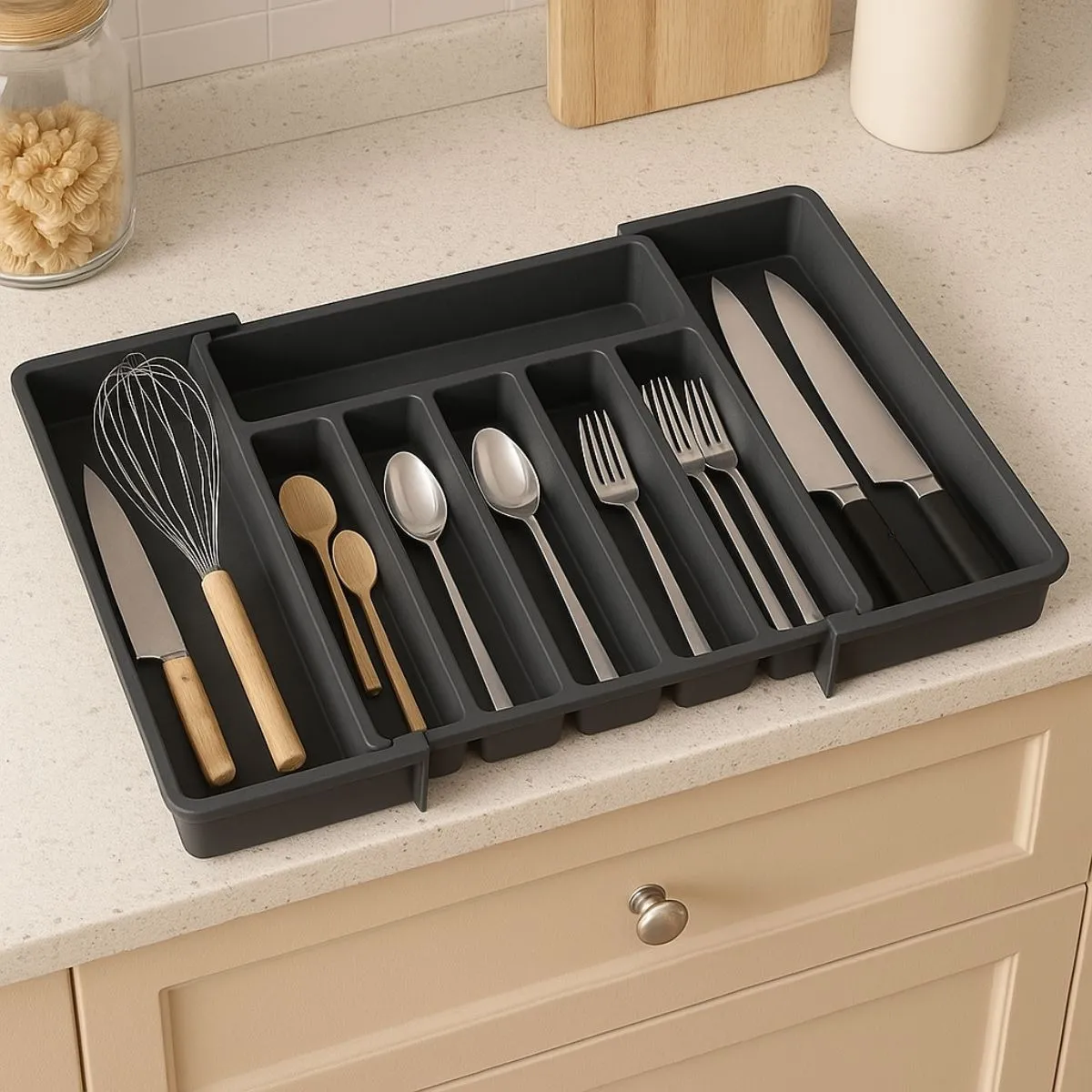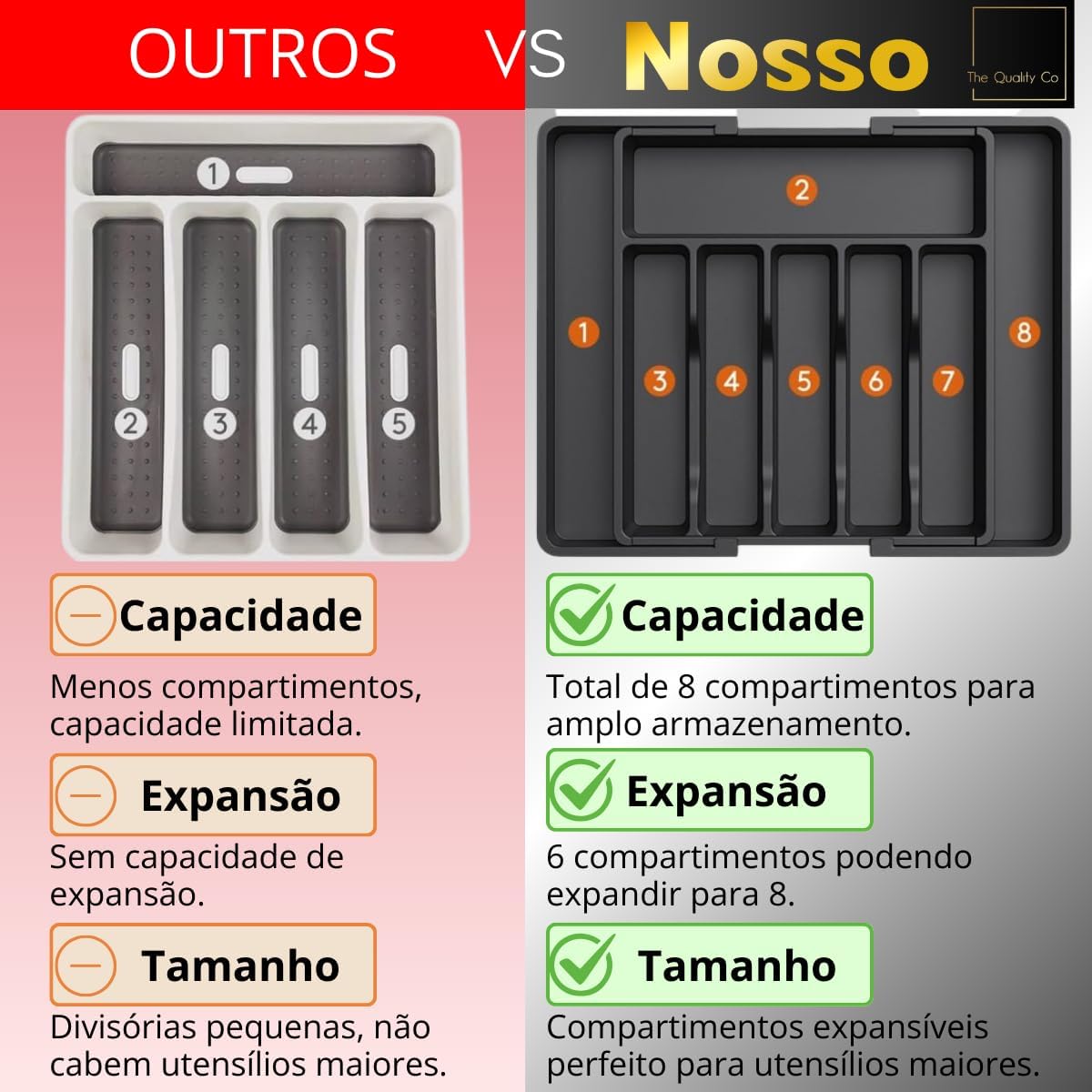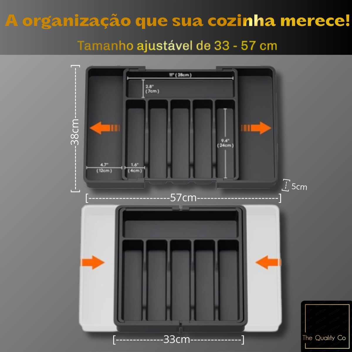 Cansado da bagunça na gaveta? Transforme o caos em ordem e encontre seus talheres e utensílios em segundos com o Organizador de Gaveta Extensível BMax